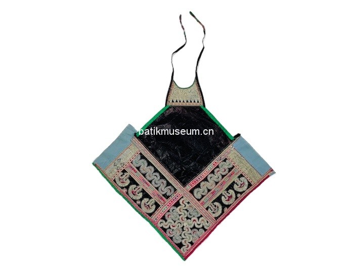 中文名:贵州省黔东南苗族侗族自治州从江岜沙苗族植物染亮布龙鸟八角花纹刺绣几何龙纹蜡染(枫香染)胸兜