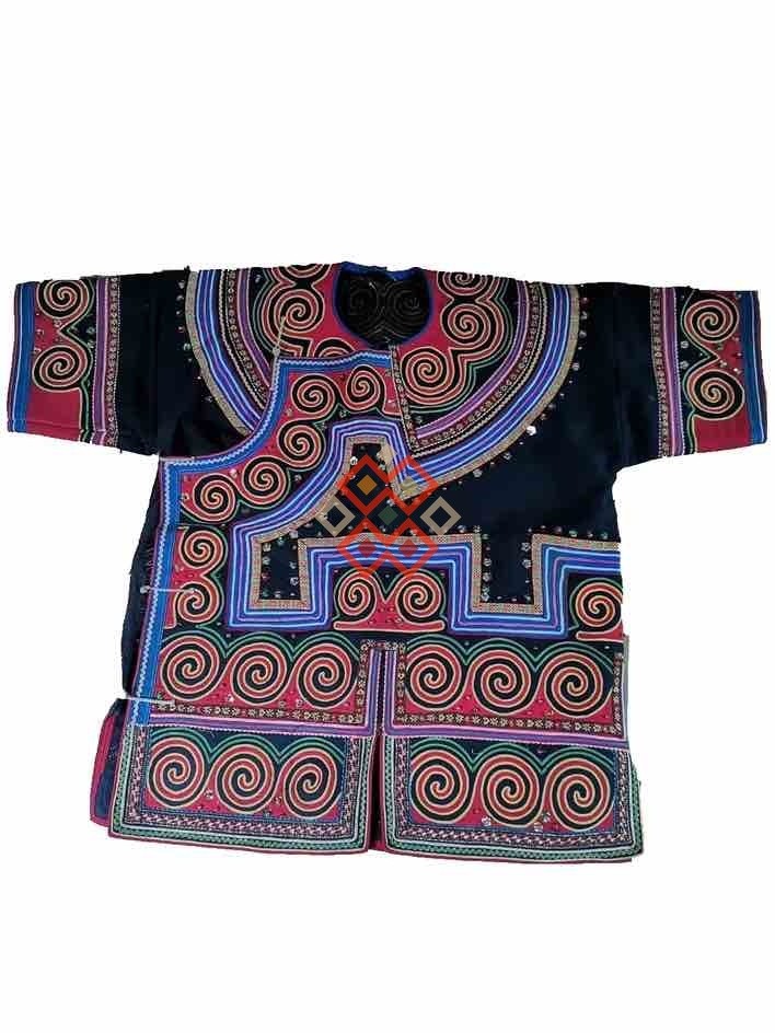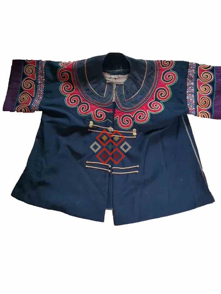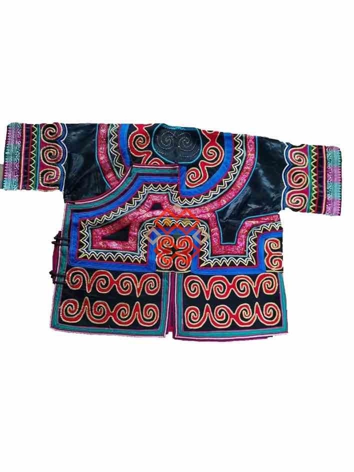 贵州省安顺市苗族小花苗蝴蝶石榴花公鸡纹鸟头花卉几何纹真丝刺绣上轿衣