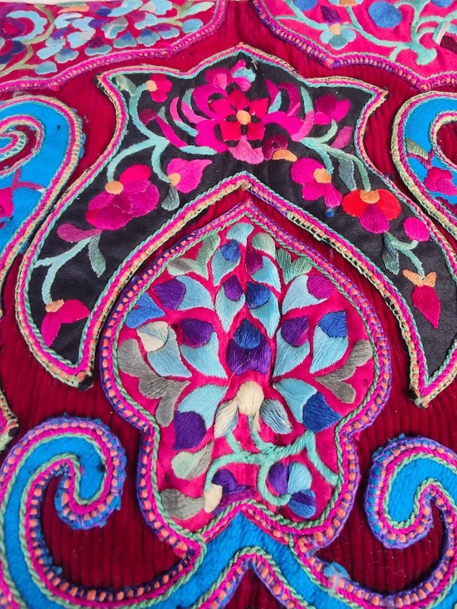 壮族老绣背扇