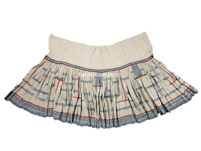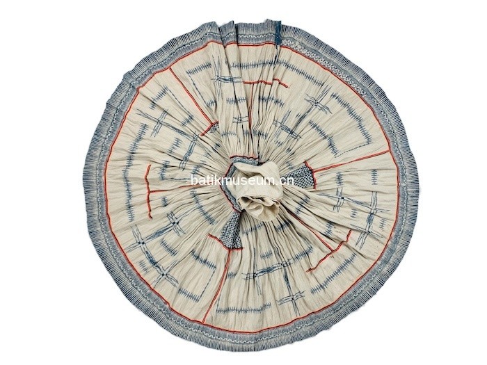 中文名:贵州省毕节市赫章苗族大花苗八角星几何纹贴布绣麻布蜡染百褶裙