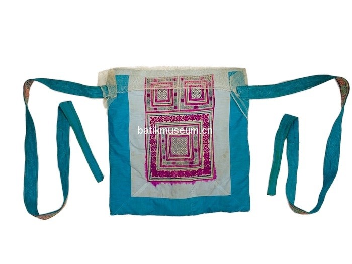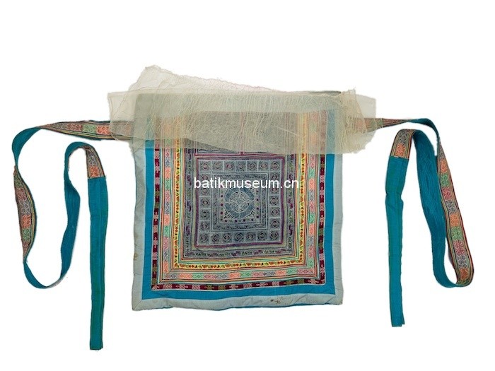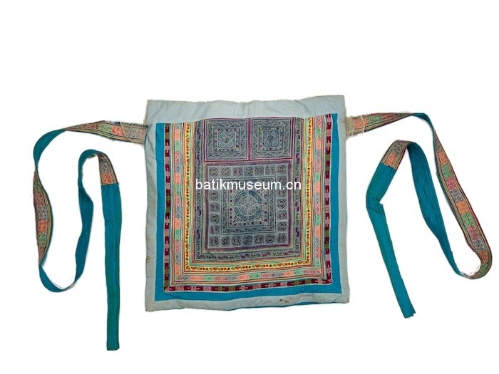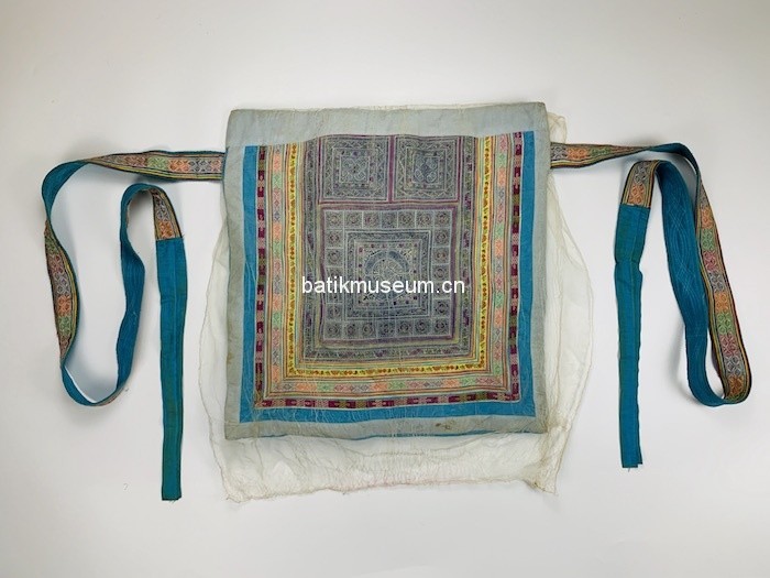 中文名:贵州省毕节市大方县苗族四鸟花卉变形八角花巫纹彩色蜡染刺绣双面背扇