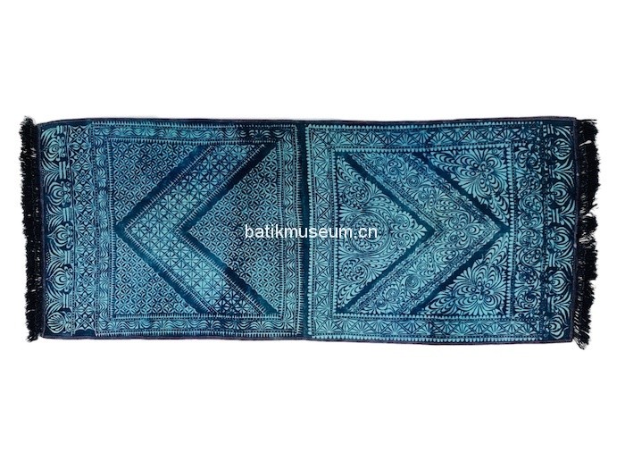 中文名:贵州省黔东南苗族侗族自治州麻江饶家蝴蝶鸟花草几何纹蜡染(枫香染)外层头帕