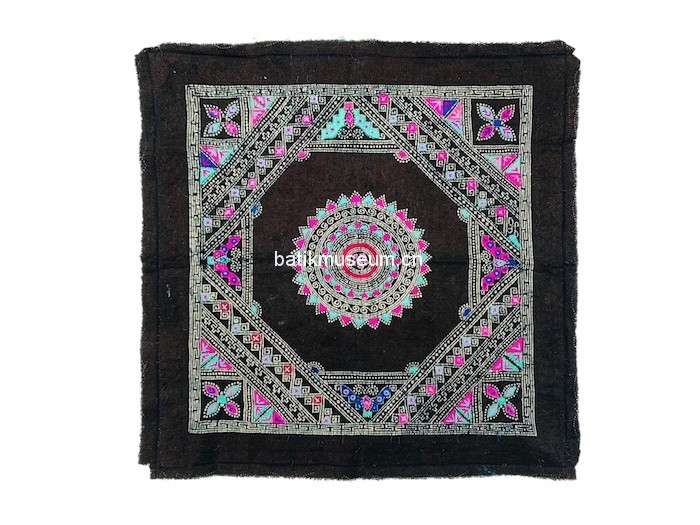 中文名:广西壮族自治区柳州市融水苗族蝴蝶花卉太阳几何纹蜡染(枫树蜡)刺绣背扇片