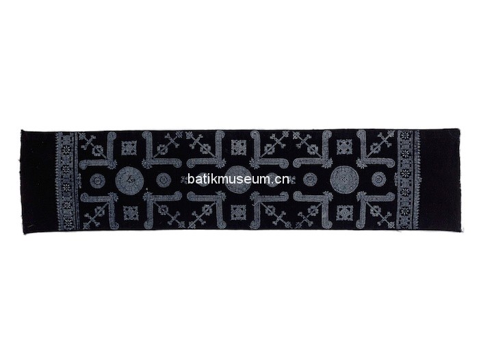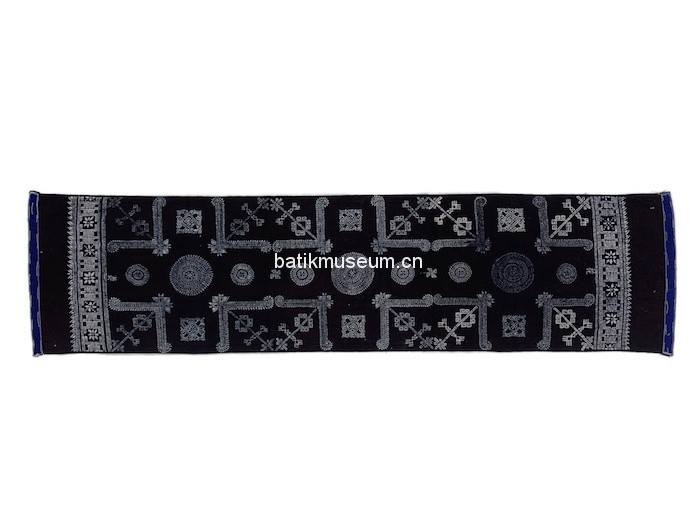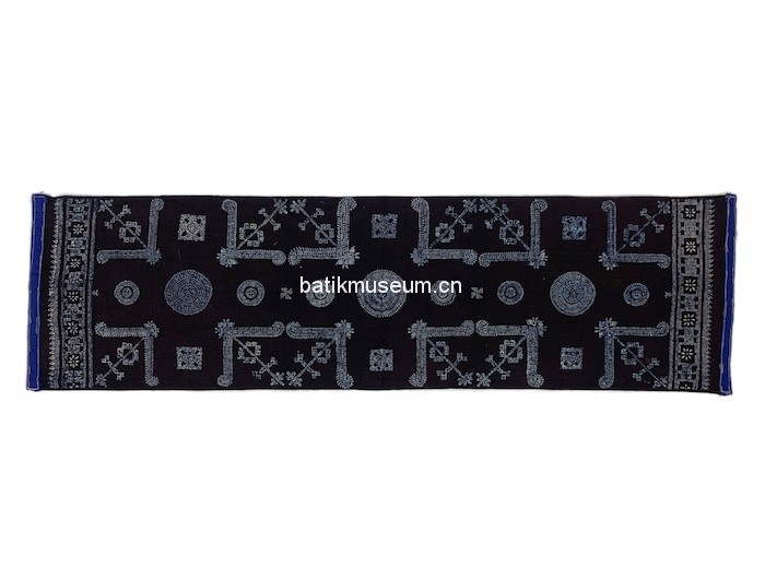 中文名:广西壮族自治区柳州市融水苗族寿字花卉几何(木头桌子)纹蜡染(枫树蜡)头巾