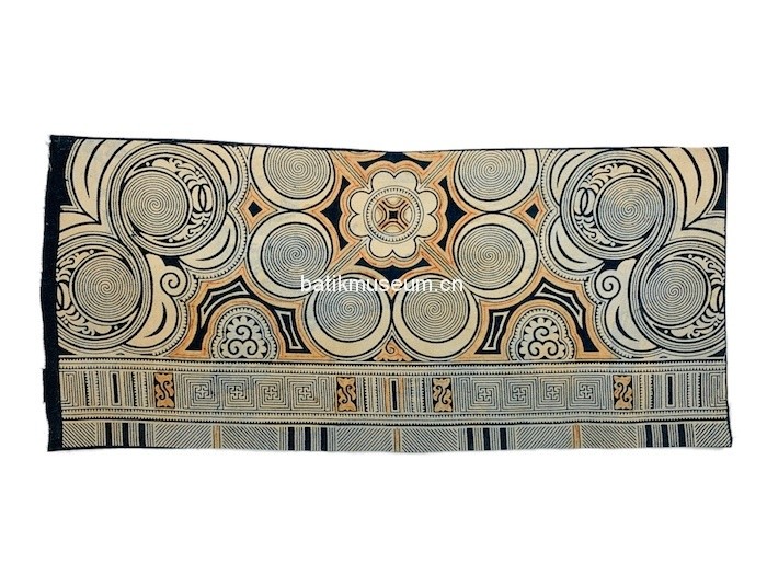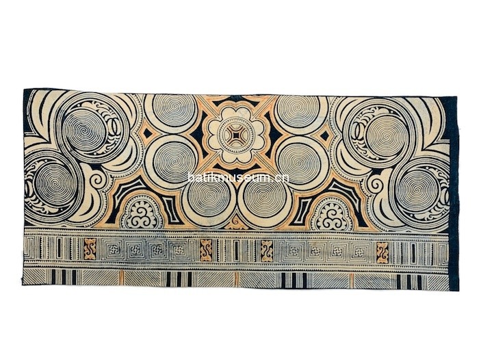 中文名:贵州省黔东南苗族侗族自治州丹寨苗族白领苗旋斗纹手织布涡万字几何纹彩色蜡染袖片一对