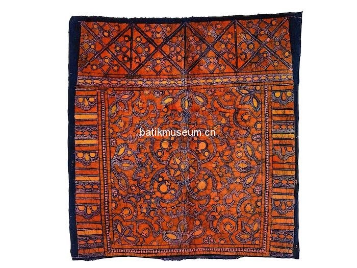 中文名:贵州省安顺市苗族小花苗石榴鸡冠花纹彩色蜡染背扇