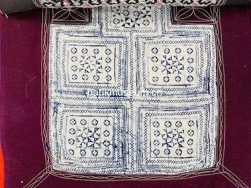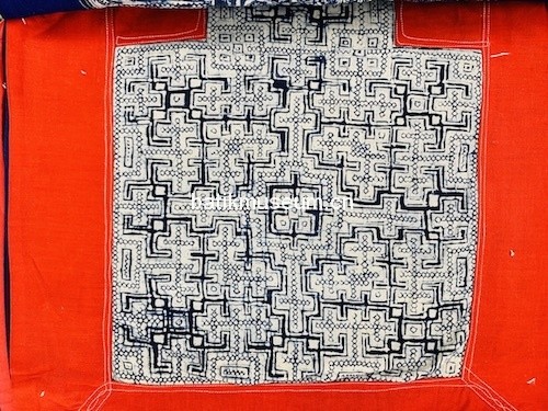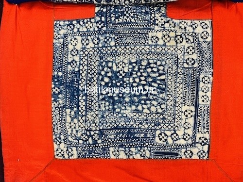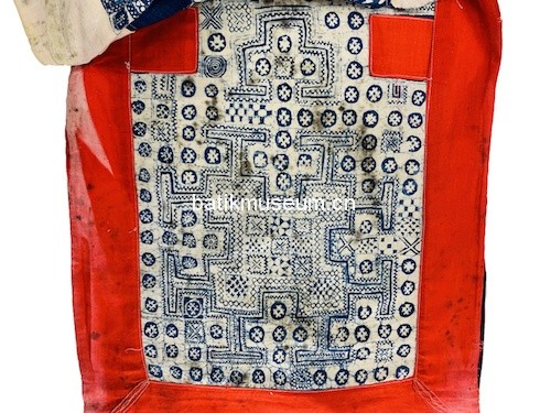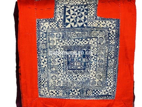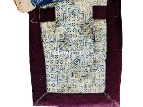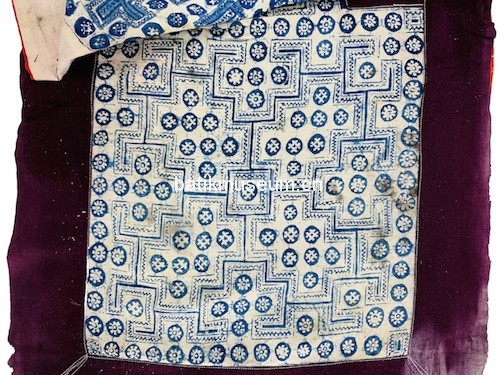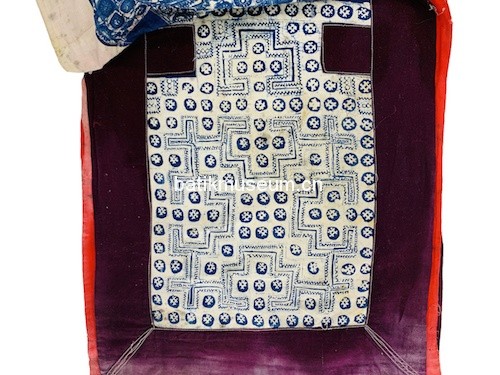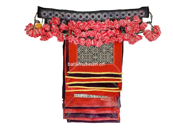 中文名:贵州省毕节市纳雍县龙场镇苗族木梳苗几何纹蜡染挑花多层背扇