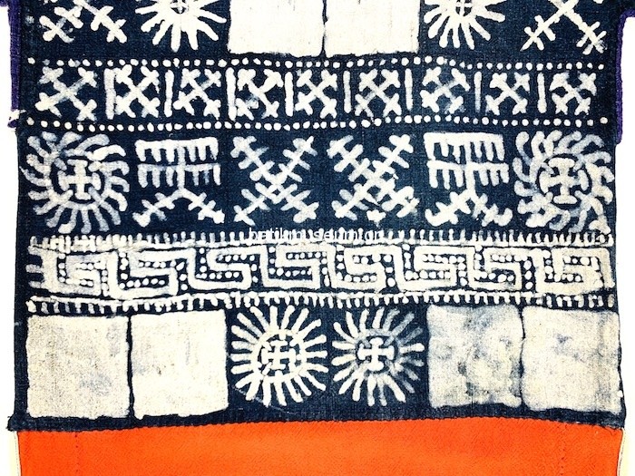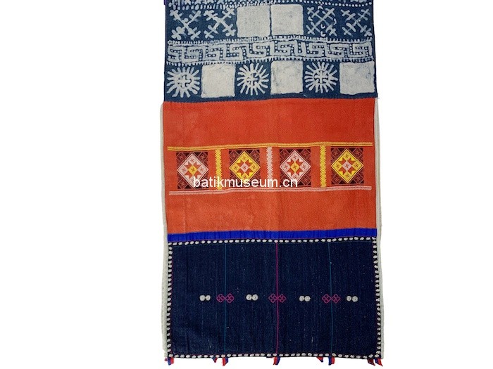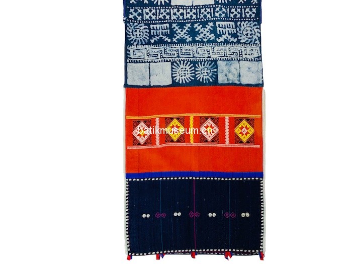 中文名:广西壮族自治区百色市那坡县彝族日月星辰几何纹蜡染八角星纹织锦龙凤图贯首衣(盛装)
