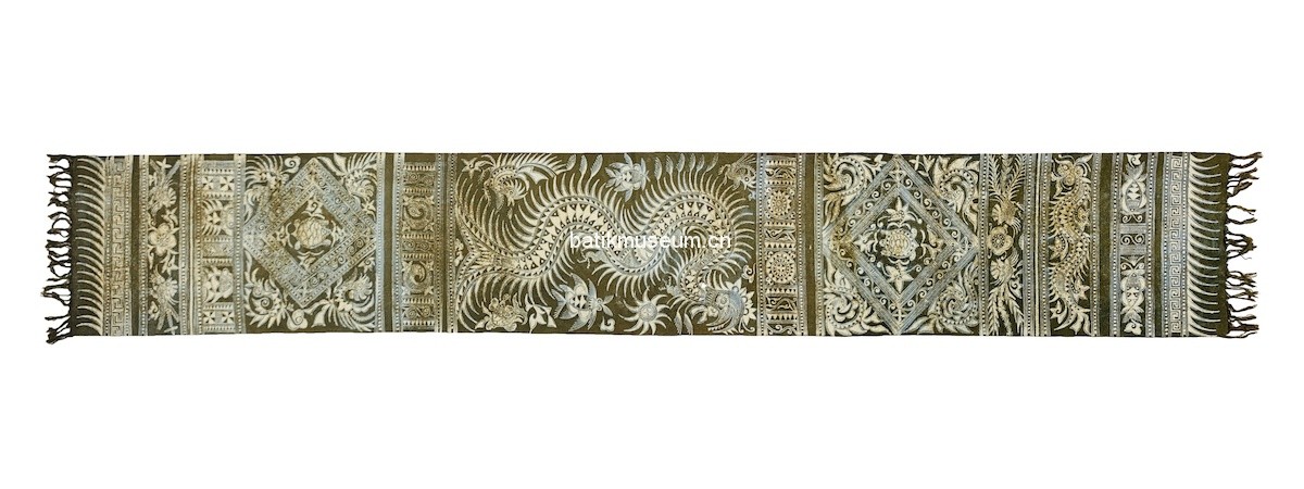 中文名:贵州省黔东南苗族侗族自治州榕江苗族龙鸟蜈蚣龙鱼鸟花龟几何纹蜡染牯藏节祭祀长幡