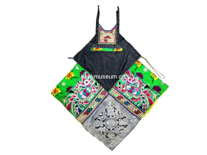 中文名:贵州省黔东南苗族侗族自治州榕江苗族鸟花铜鼓万字纹蜡染鸟花几何纹刺绣亮布围胸