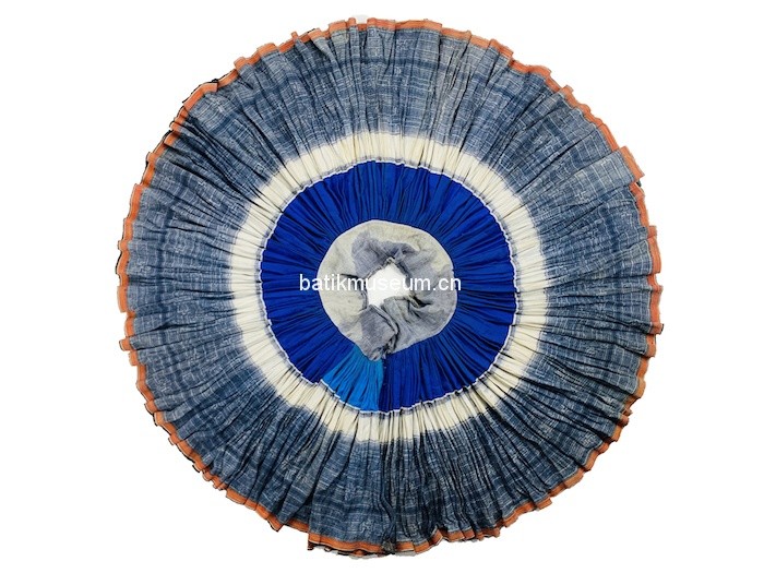 中文名:贵州省六盘水市钟山区南开苗族彝族乡(原水城)苗族漩涡菱形城池纹双色蜡染百褶裙